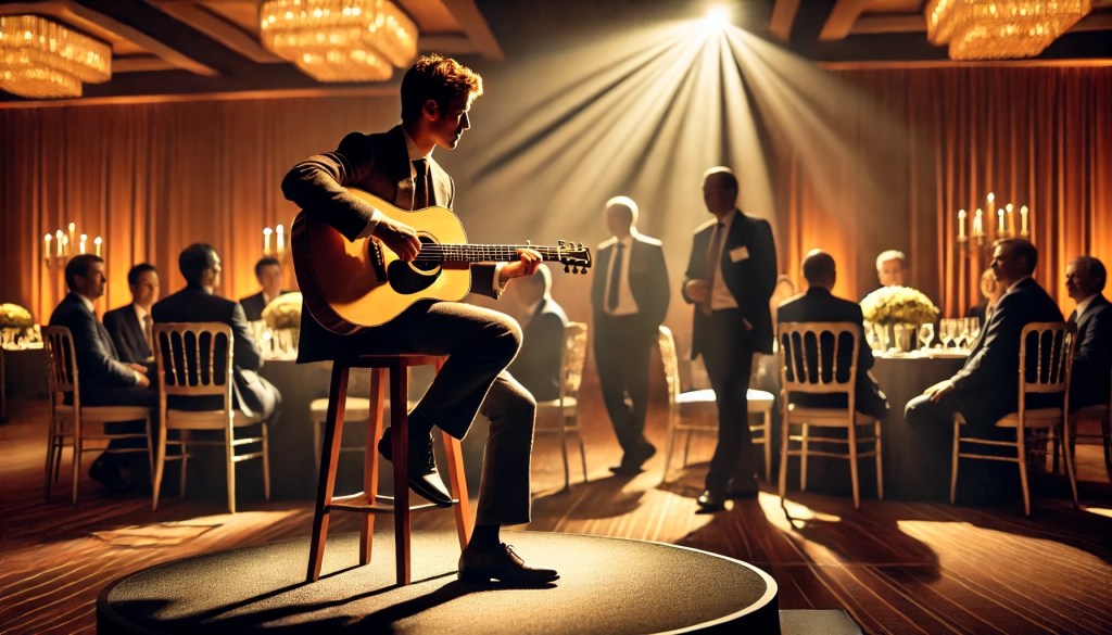 Booking a solo acoustic musician demonstrates attention to detail and a commitment to creating a thoughtful, high-quality event. It reflects positively on your company’s brand, showing clients, employees, and stakeholders that you value a polished and professional atmosphere.